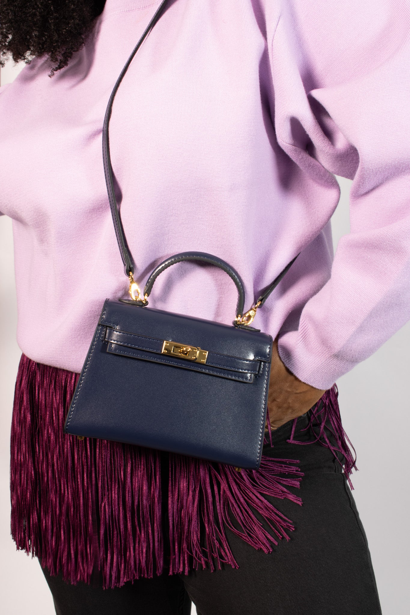 She's a classic girl. The Eva Mini Black Bag with gold hardware and classic smooth leather is ready to stand the test of time and style as your mini go to.