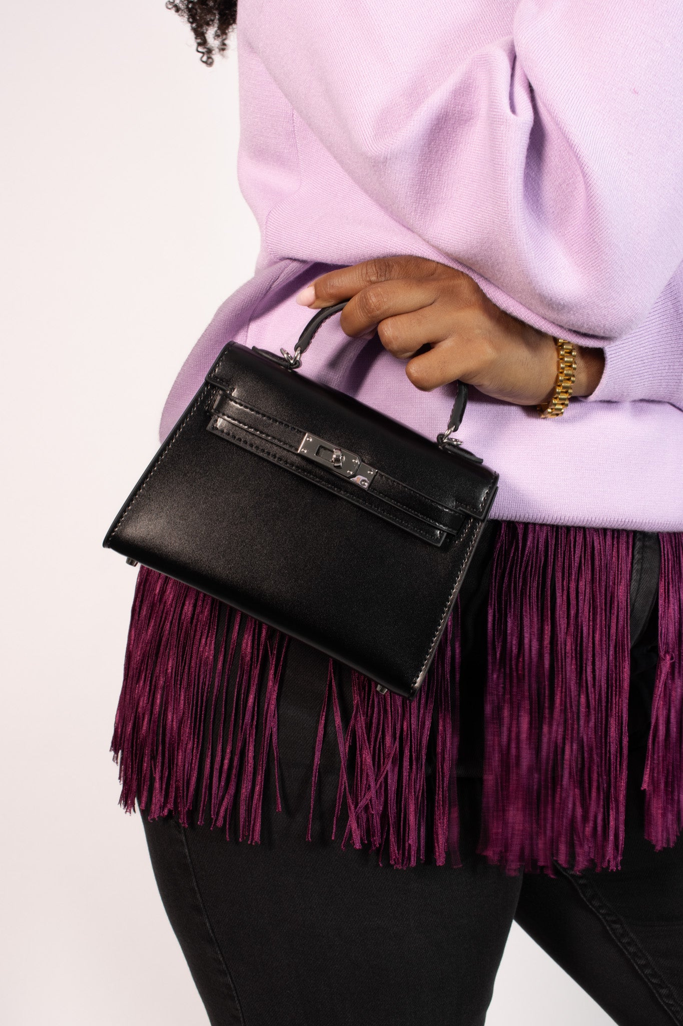 She's a classic girl. The Eva Mini Black Bag with silver hardware and classic smoothleather is ready to stand the test of time and style as your mini go to.
