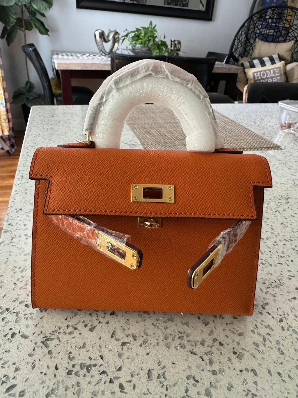 The bag is a beauty!! The color looks amazing and for it to be a mini, it can hold a lot of items. I thought I wouldn’t be able to wear it cross body because the strap is not adjustable but I was able to, so definite plus for me! Glad I added the orange to buy closet!