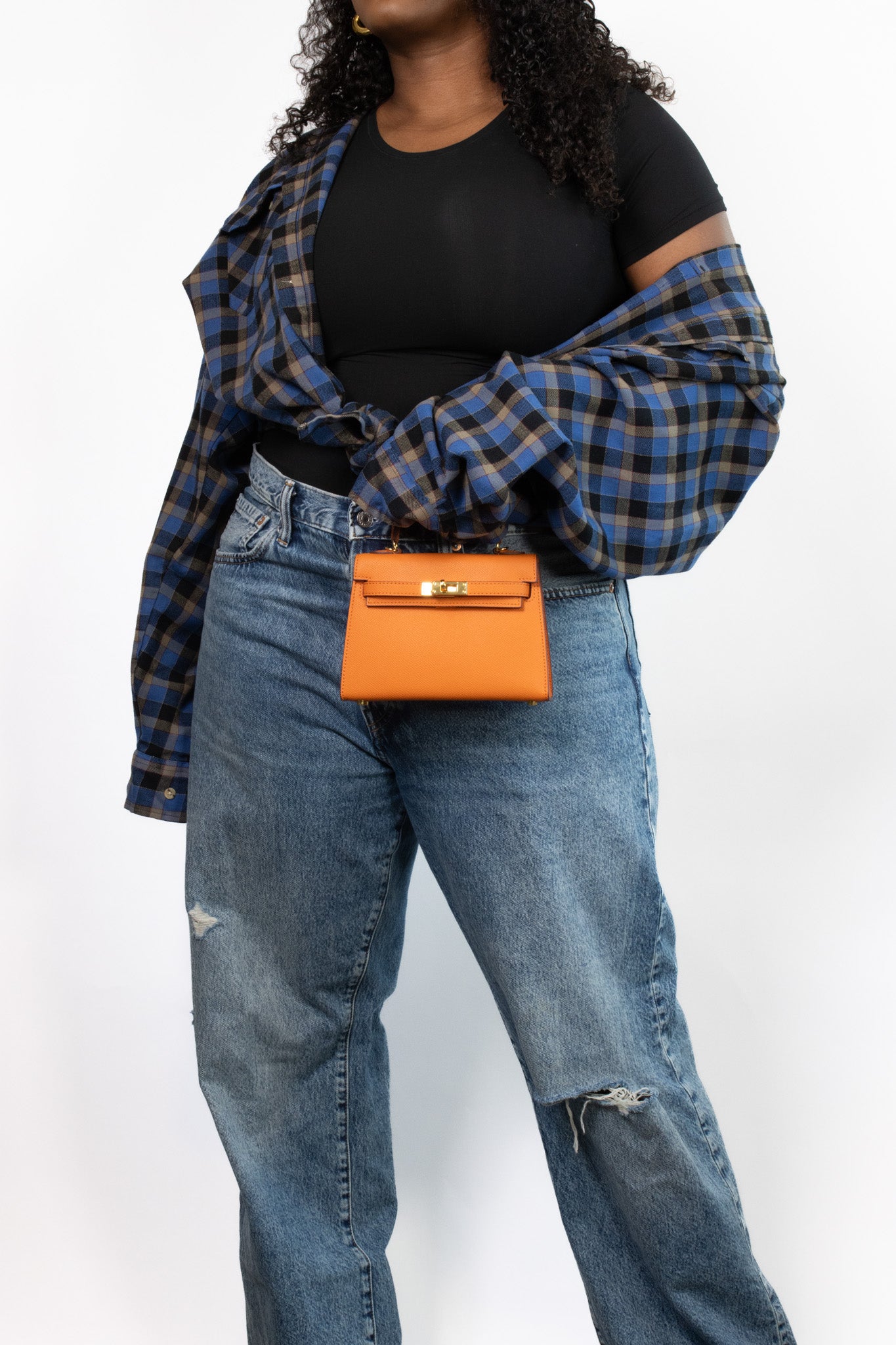 Talk about a pop of color! Eva Mini Tangelo is a show stopping mini powerhouse. Pair with endless Summer wardrobe or cozy fall looks for a completely stylish ensemble.